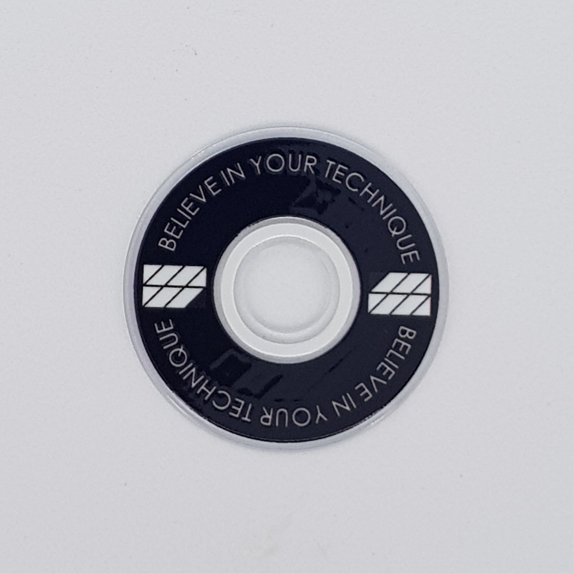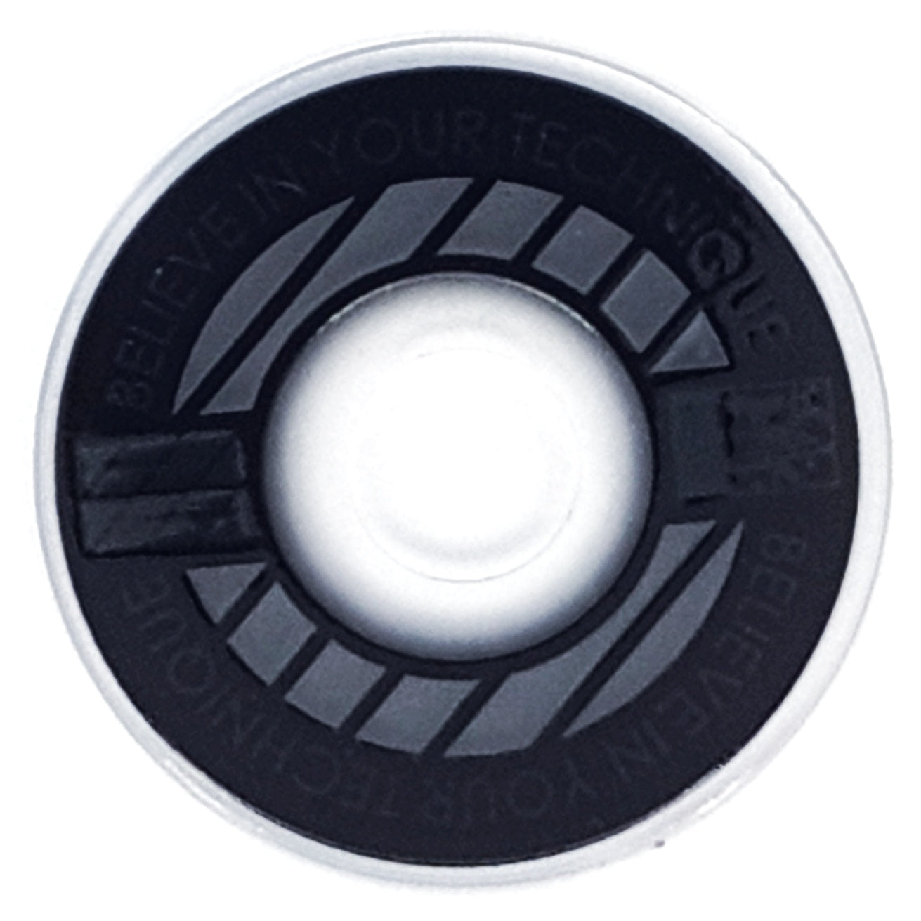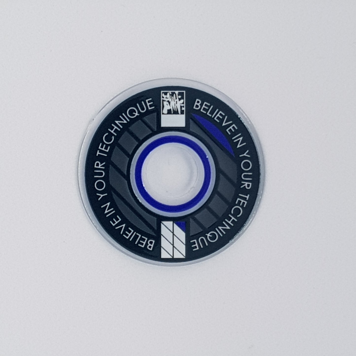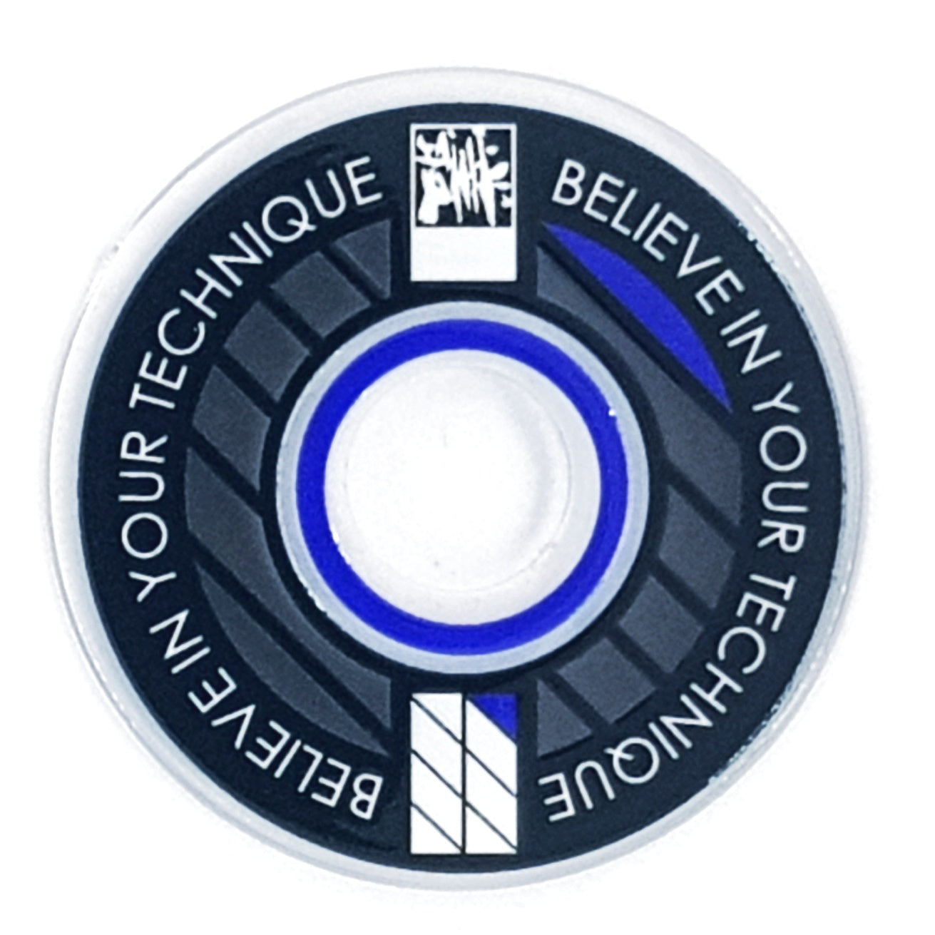 Designed from an outlook to provide a high quality and unique custom arcade accessory, this dustwasher is widely recognised around the world. The key design features are the clear ring near the shaft hole that permits the player to see the joystick pivot as well as the display of a motivational expression ("Believe In Your Technique").