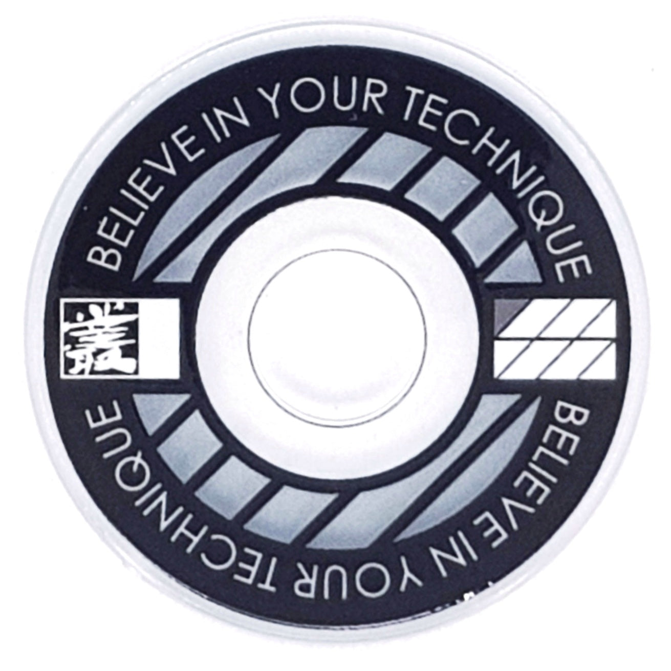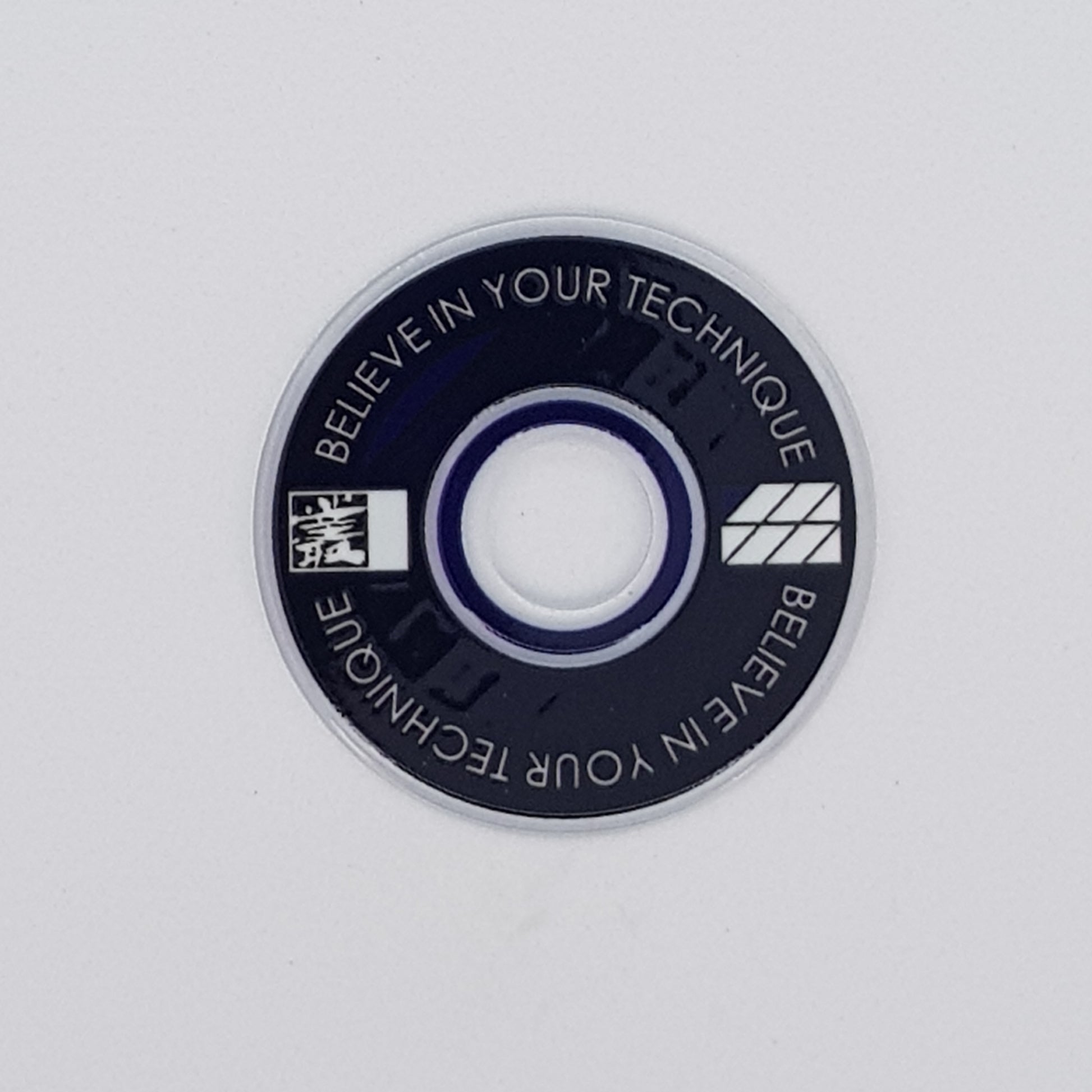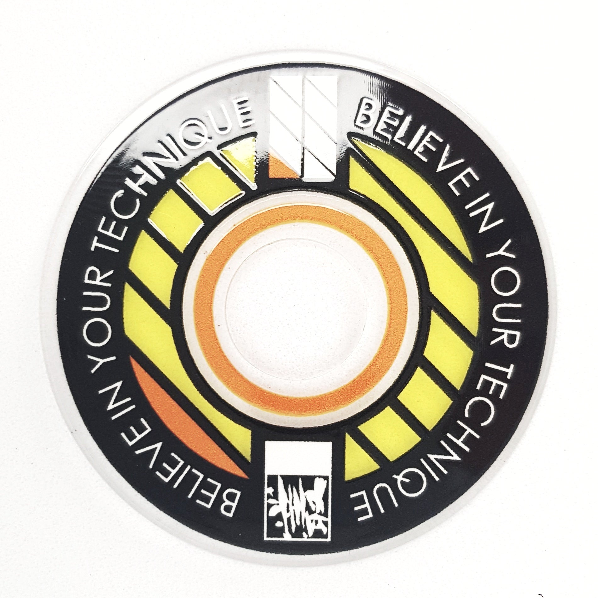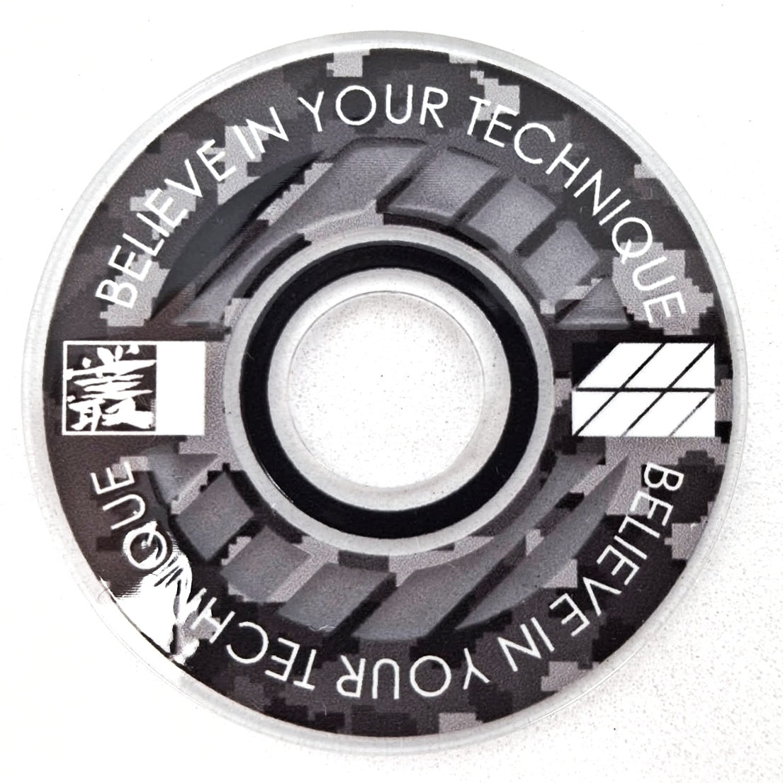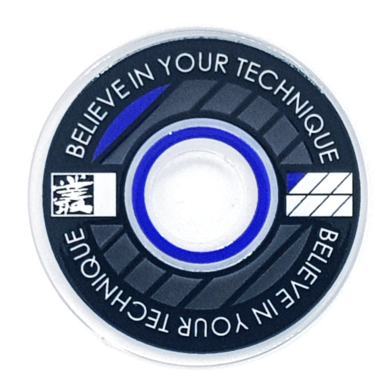 Designed from an outlook to provide a high quality and unique custom arcade accessory, this dustwasher is widely recognised around the world. The key design features are the clear ring near the shaft hole that permits the player to see the joystick pivot as well as the display of a motivational expression ("Believe In Your Technique").