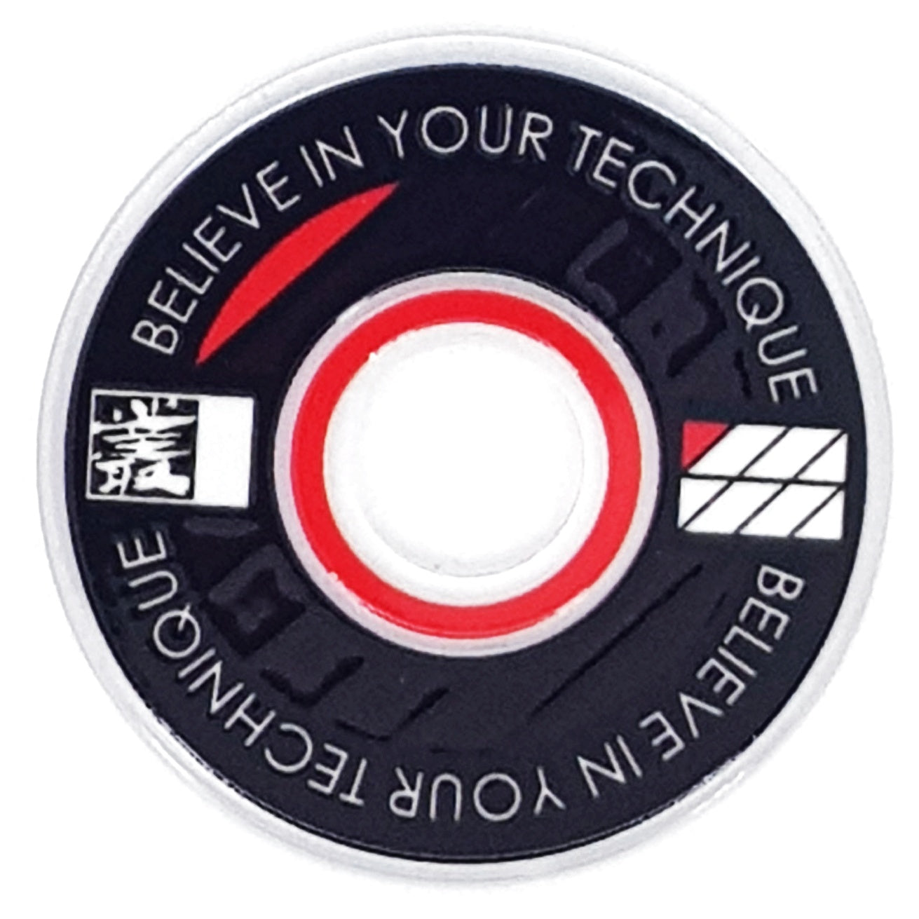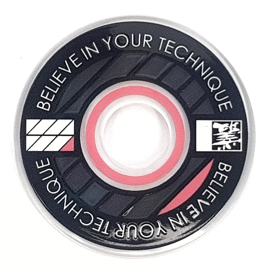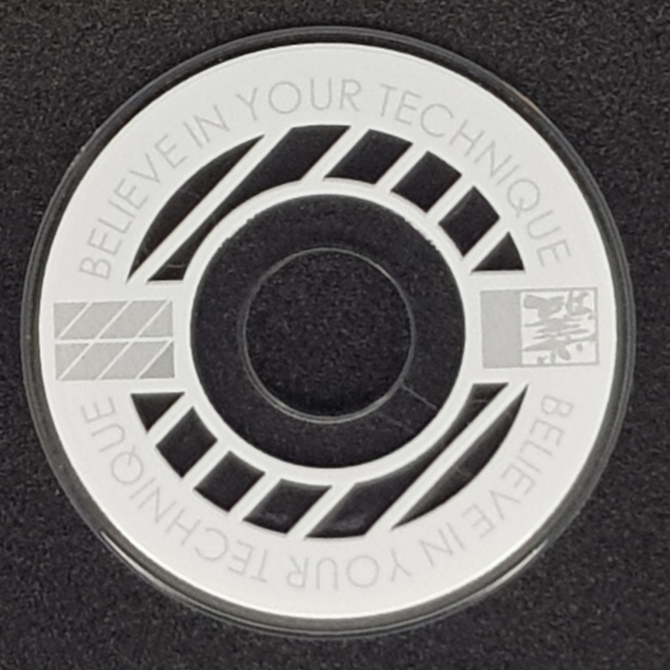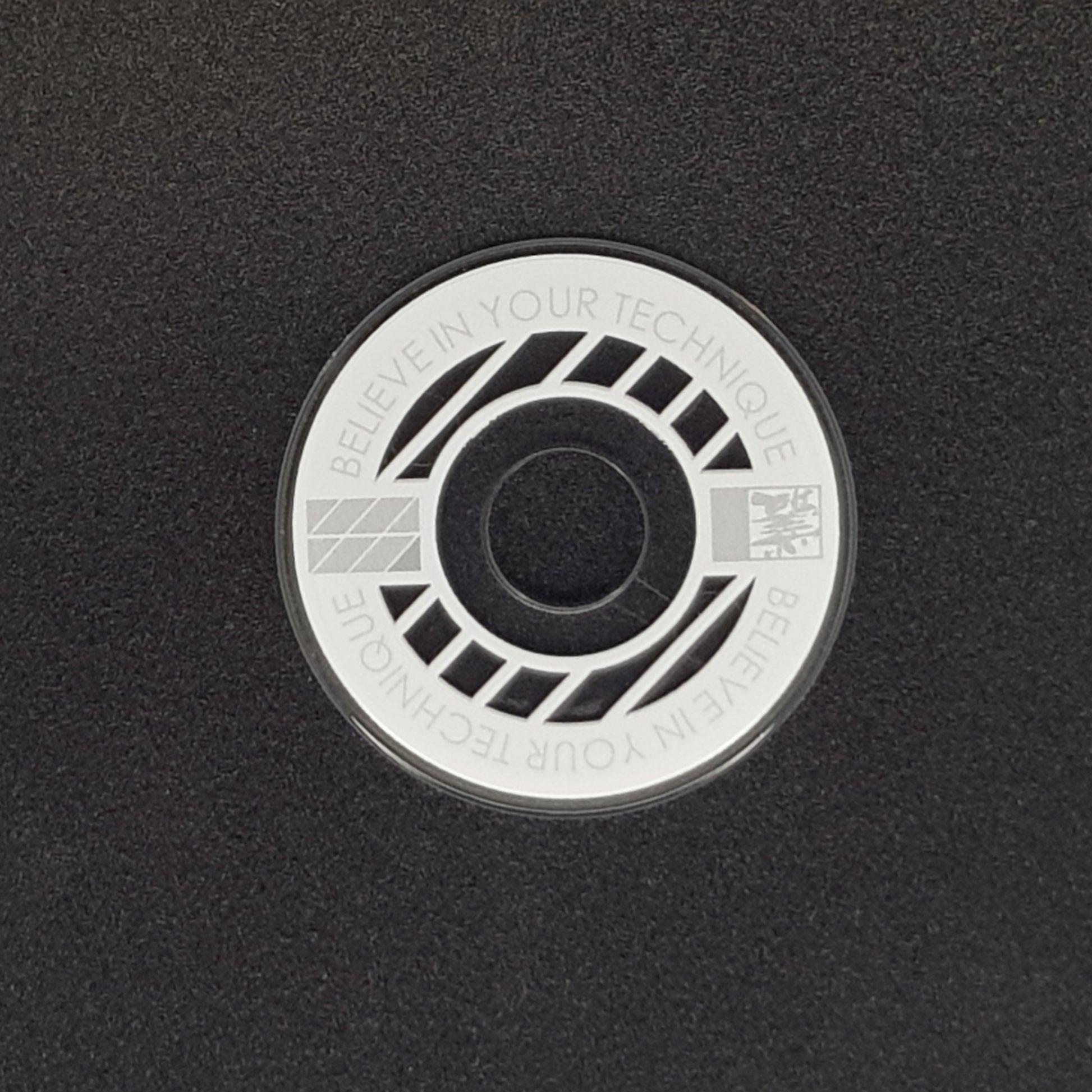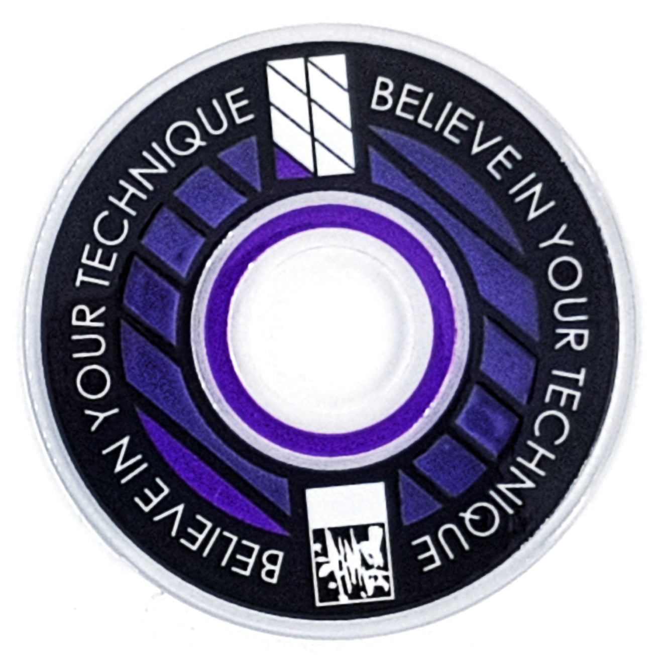 Designed from an outlook to provide a high quality and unique custom arcade accessory, this dustwasher is widely recognised around the world. The key design features are the clear ring near the shaft hole that permits the player to see the joystick pivot as well as the display of a motivational expression ("Believe In Your Technique").