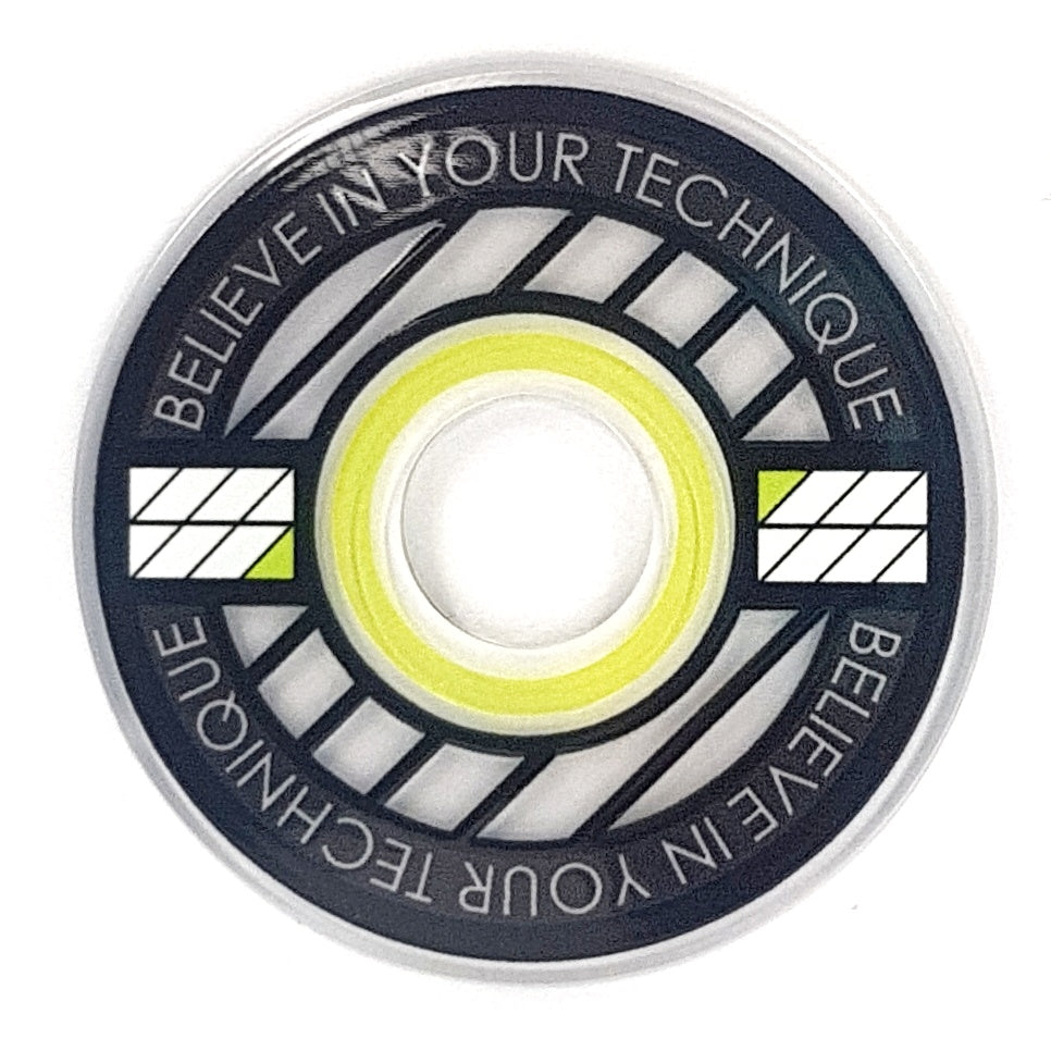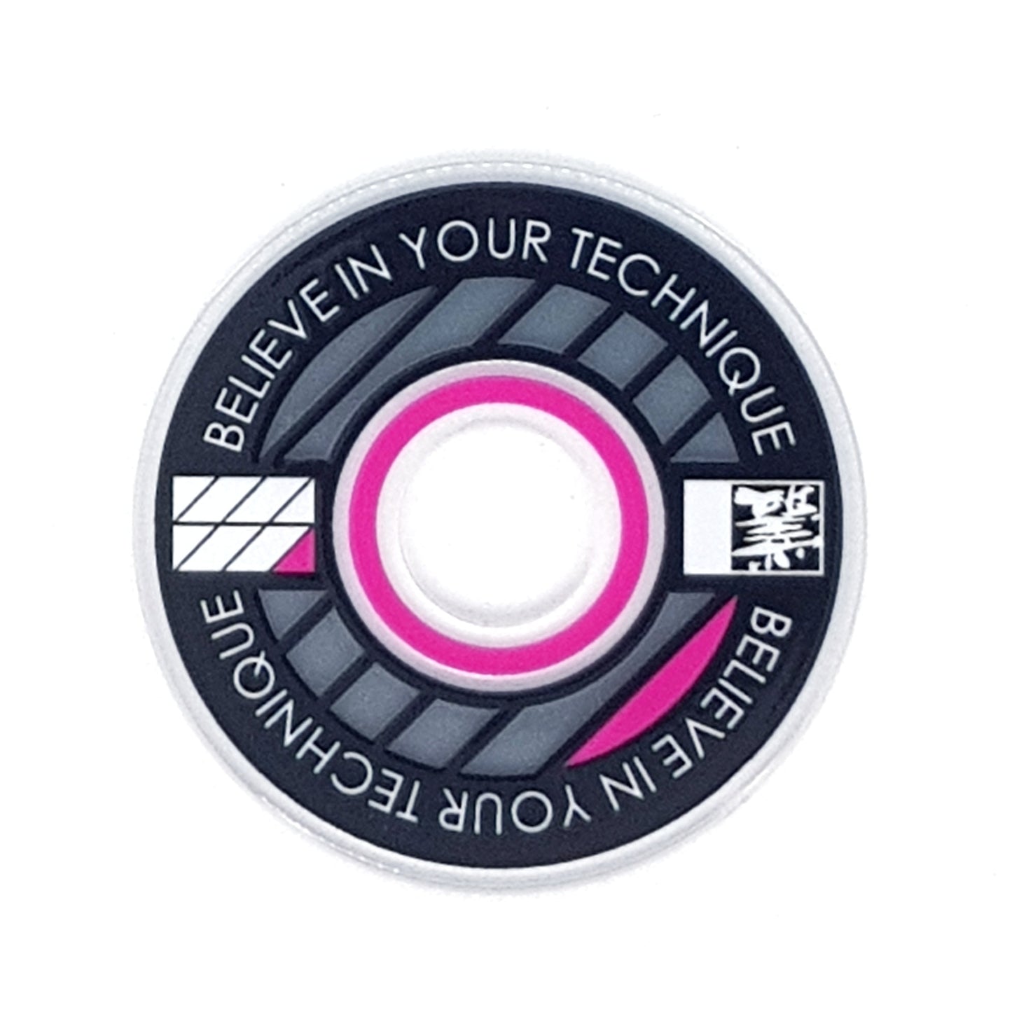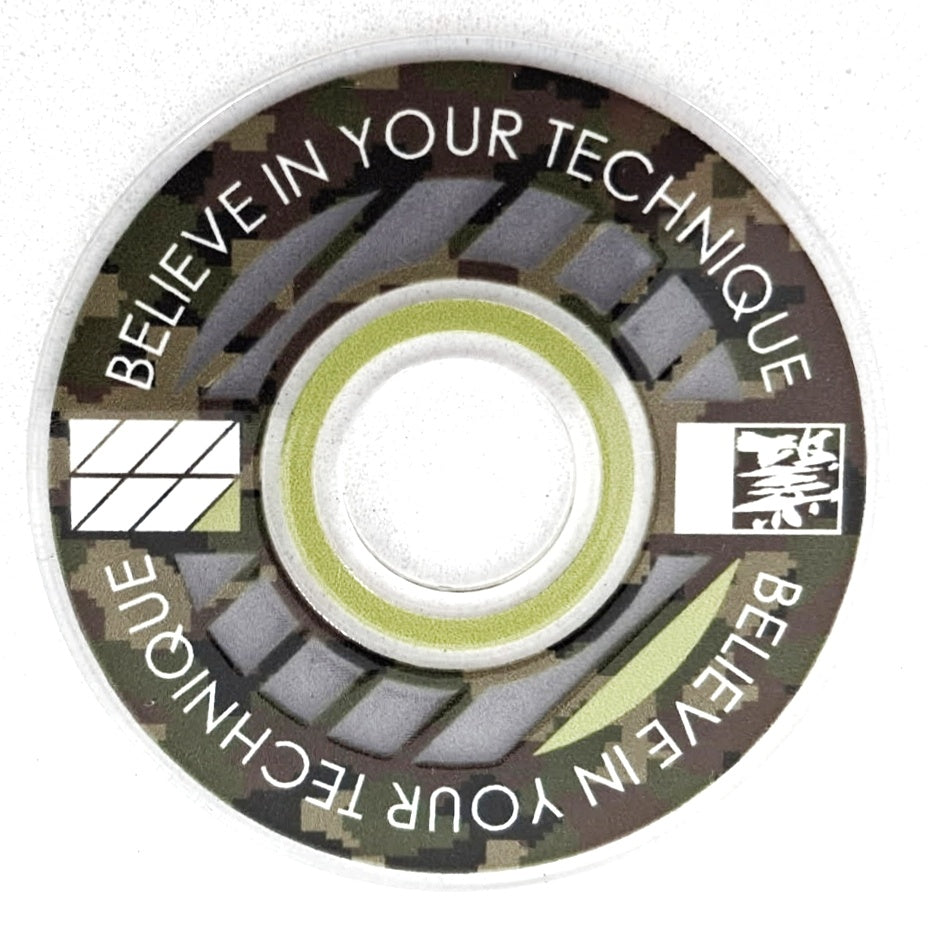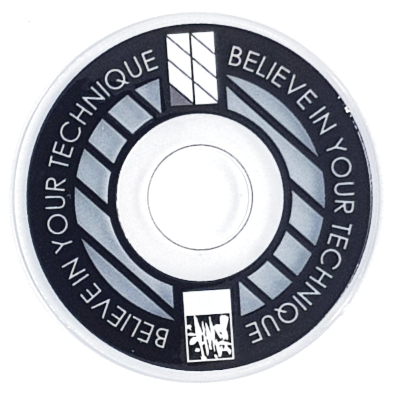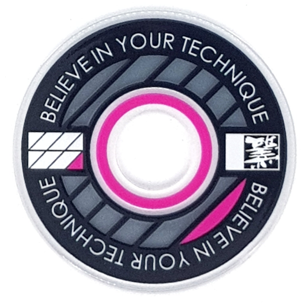 Designed from an outlook to provide a high quality and unique custom arcade accessory, this dustwasher is widely recognised around the world. The key design features are the clear ring near the shaft hole that permits the player to see the joystick pivot as well as the display of a motivational expression ("Believe In Your Technique").