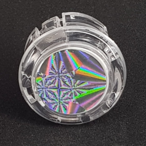 A holographic styled, transparent snap-in pushbutton in 30mm diameter, manufactured by Seimitsu.