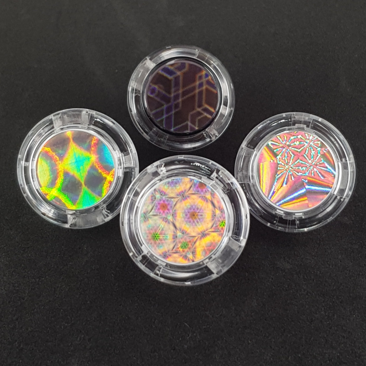Additionally, the holographic section is not affixed permanently inside the button cap, allowing the user to change the orientation/alignment of the holographic pattern to their individual preference.